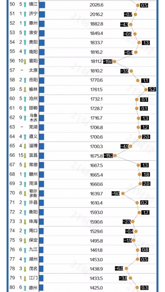 GDP百强城市排名 江苏所有城市均上榜,重庆排在南京之后