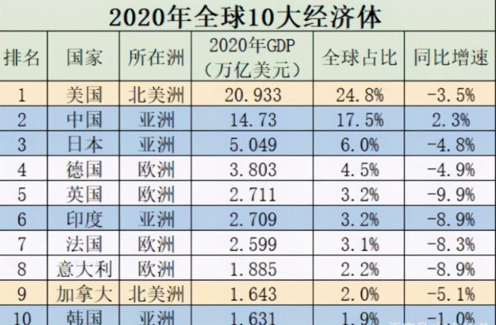 上半年GDP总量前十国家 美国10.1万亿 德国约2万亿, 中日等其他各国呢
