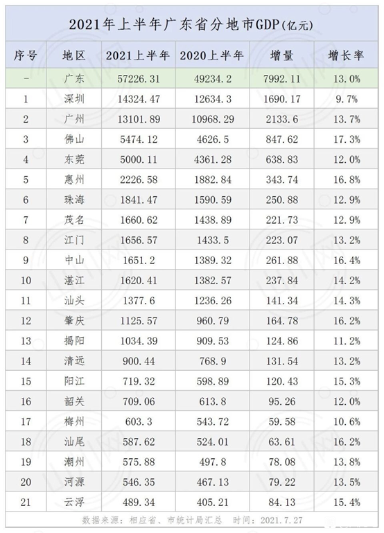 2021上半年各大城市GDP排行,快来看看有你家乡吗