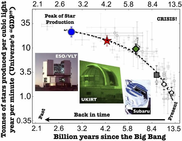 宇宙中恒星的生产率已经下降到其最高峰时期的3