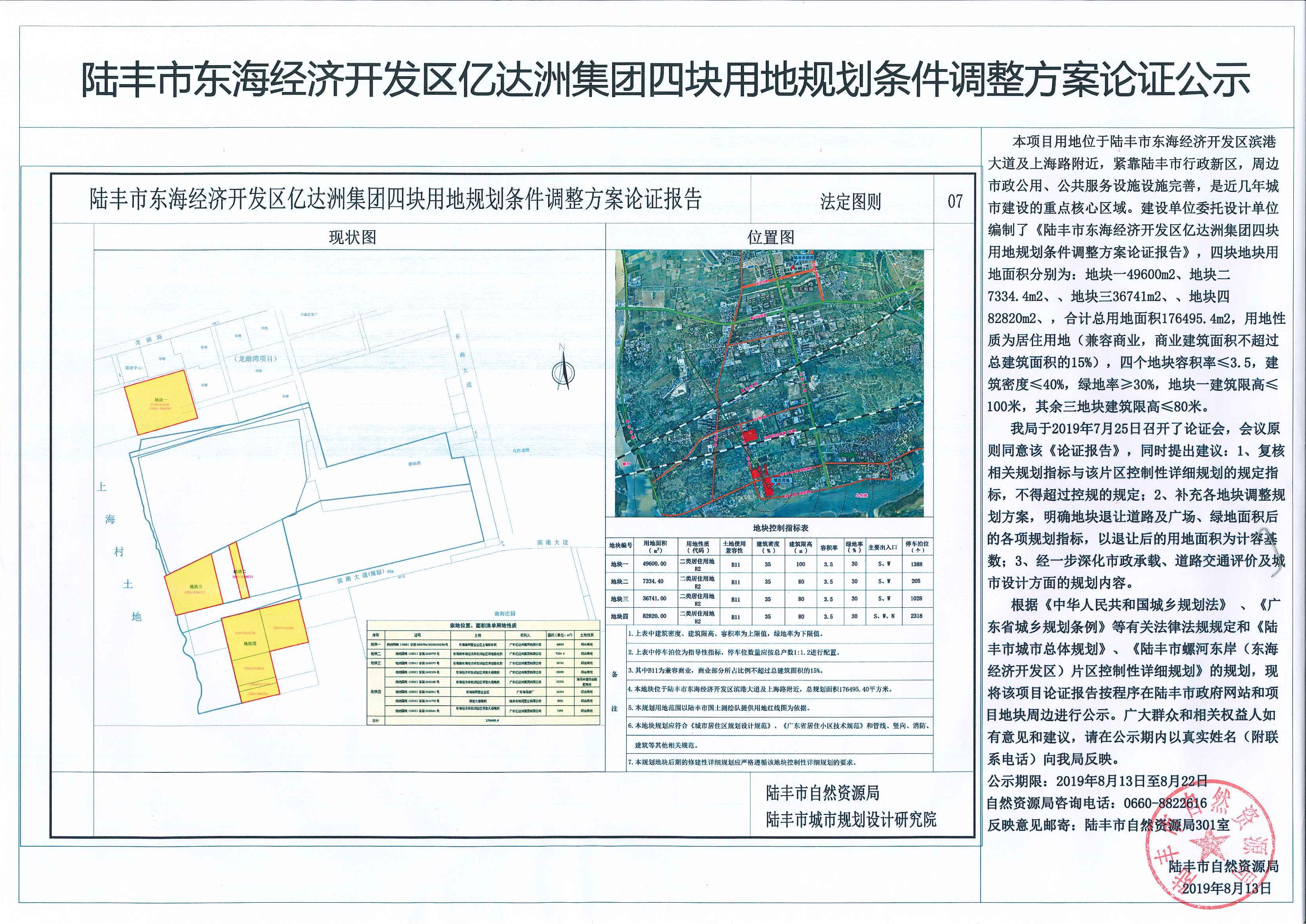 陆丰市东海经济开发区亿达洲集团四块用地规划条件调整方案论证公示