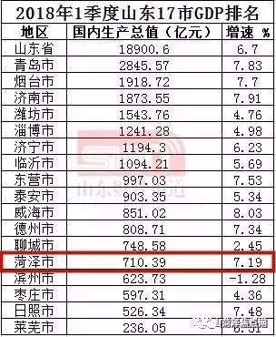 2018山东第一季度GDP出炉 菏泽国内生产总值超4城市