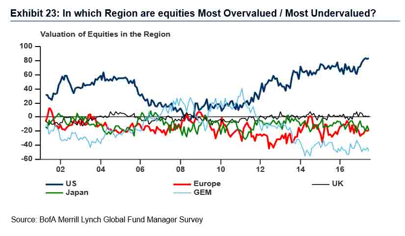 美银美林调查 81 的基金经理认为美股被高估