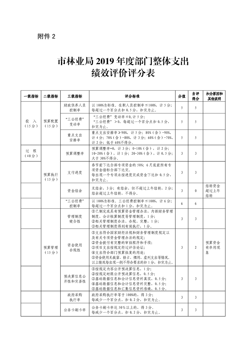 市林业局关于上报2019年财政支出绩效自评报告的函
