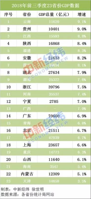 27省份前三季度GDP出炉 贵州GDP增速暂列第二