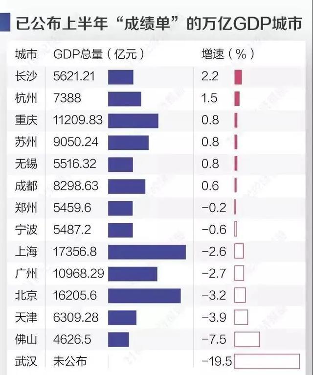 15个万亿GDP城市半年报 长沙增速最高,7城正增长,深圳成 唯一