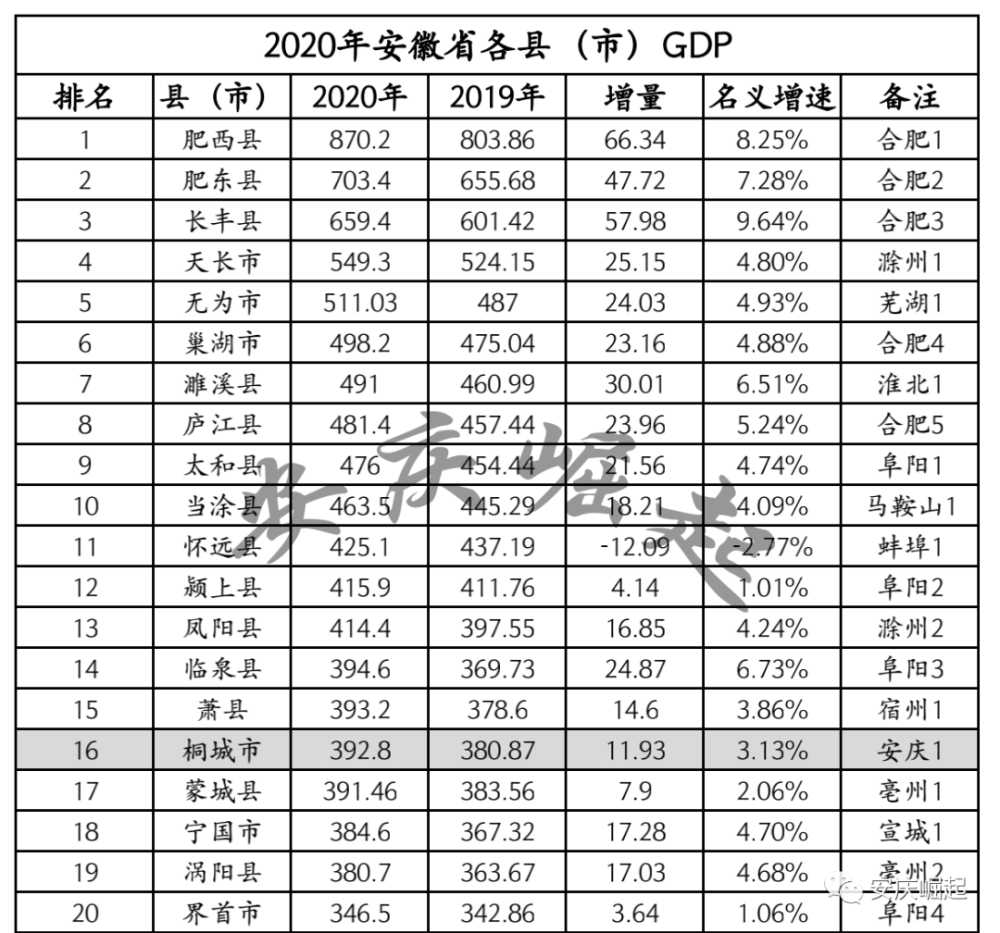 2020年各县 市 区 GDP排名发布 看看你的家乡排第几
