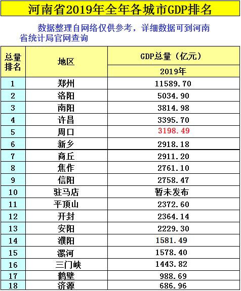 2019年河南各市GDP排行 安阳排名骤降,周口人均最低